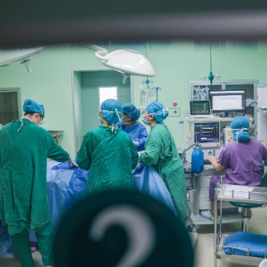 8月18日,在山东省荣成市妇幼保健院手术室,医生在进行手术。