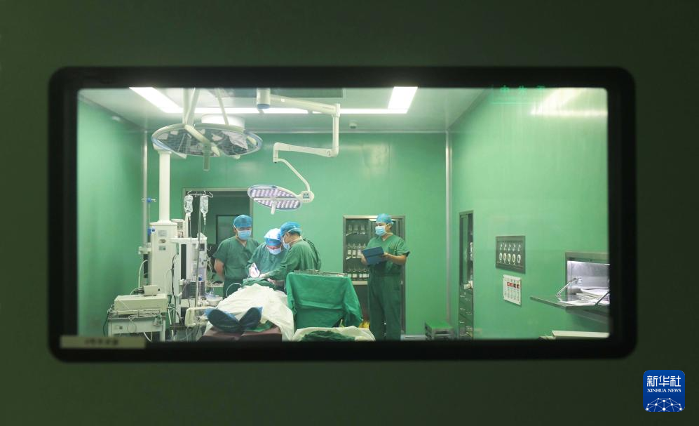 8月18日中午,湖南衡阳南华大学附二医院医生为来自黑龙江漠河的患者做手术。