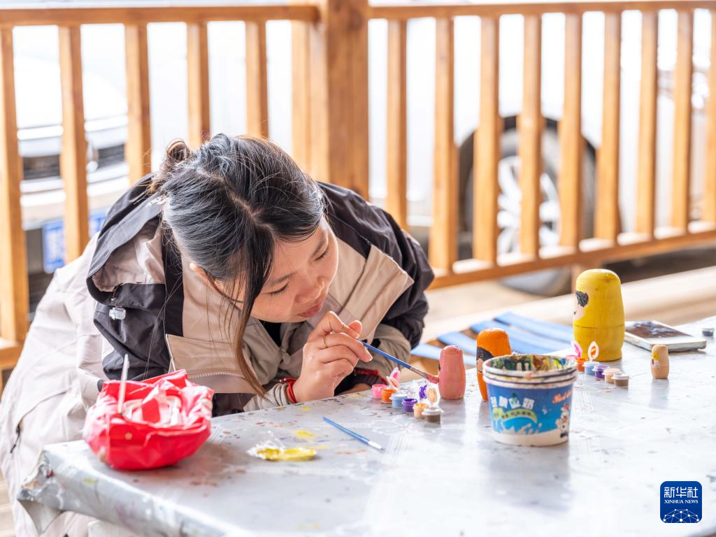 8月21日,在内蒙古恩和俄罗斯族民族乡,游客在体验绘制套娃。