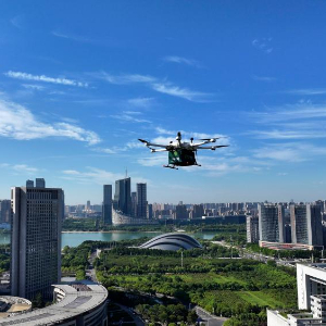 8月19日,在安徽省合肥市巢湖市中庙街道的中国邮政无人机物流枢纽站,无人机起飞配送快递包裹。