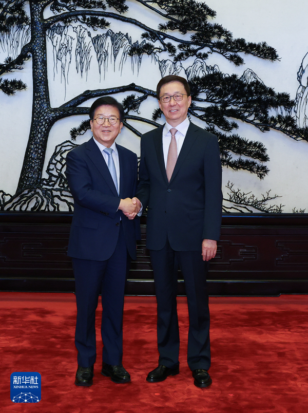 8月26日,国家副主席韩正在北京会见韩国总统特使朴炳锡。