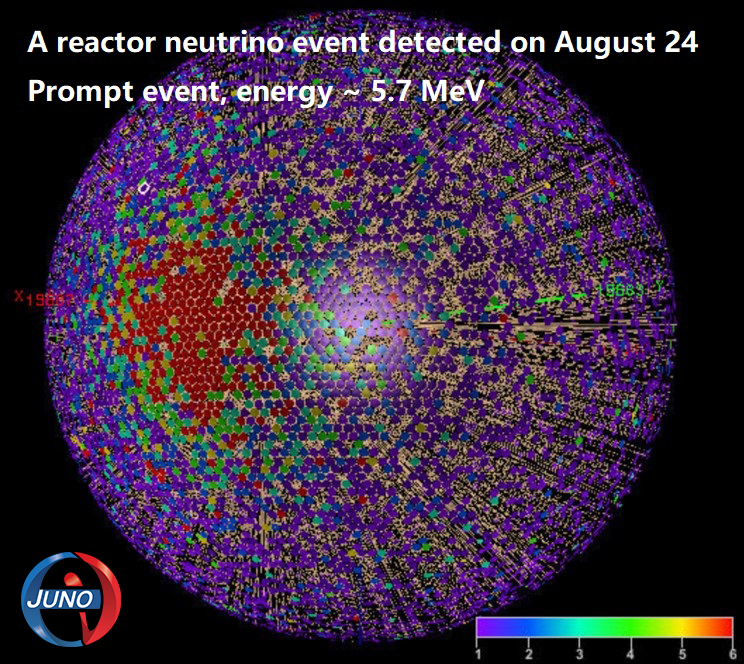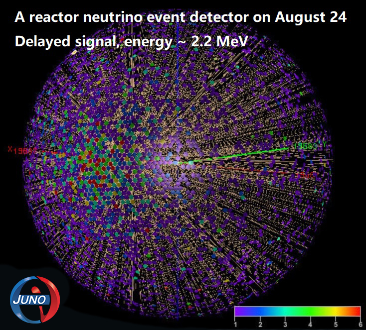这是8月24日江门中微子实验探测到的一个反应堆中微子事例示意图。