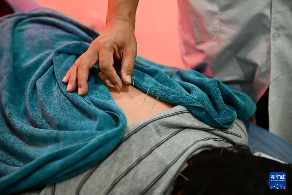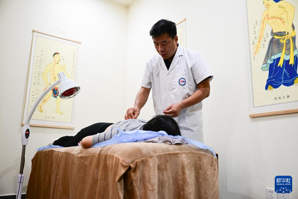 8月27日,游客在位于黄山市屯溪区的新安养生馆体验针灸。