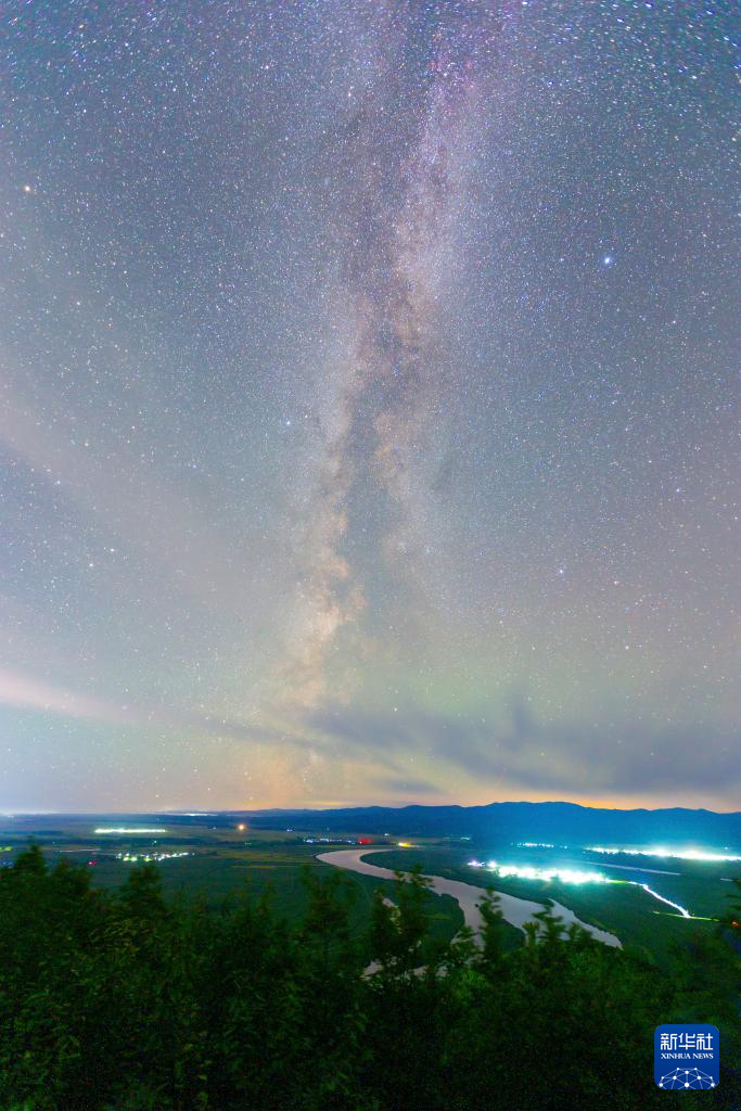 这是在黑龙江省佳木斯市汤原县拍摄的银河和两侧的牛郎星、织女星(8月24日摄)。