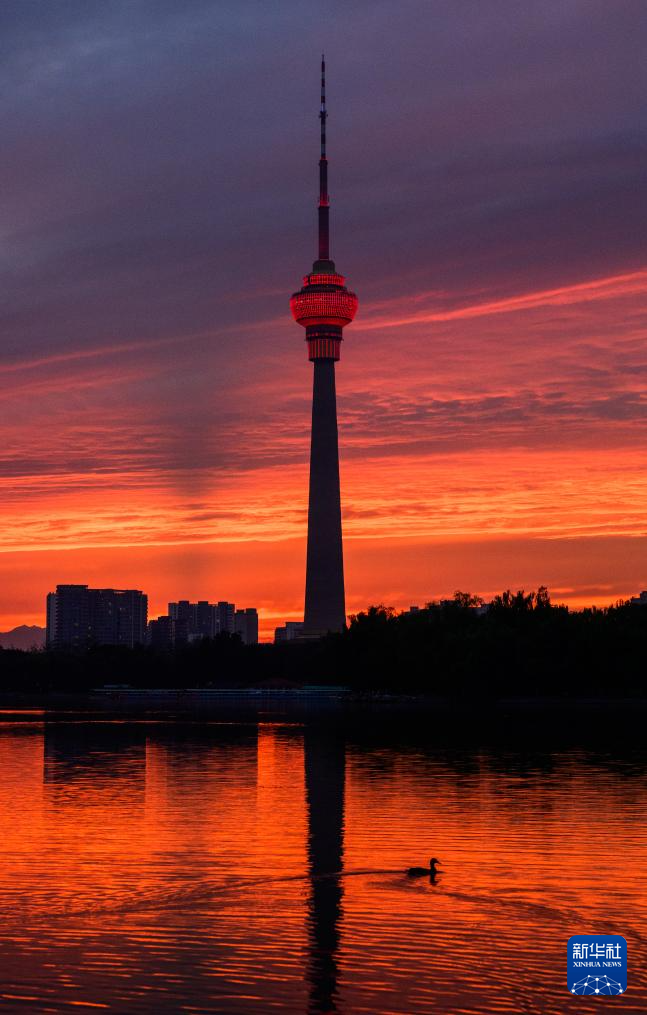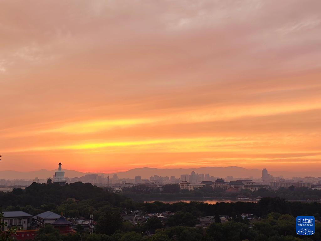 8月29日在北京玉渊潭公园拍摄的晚霞。