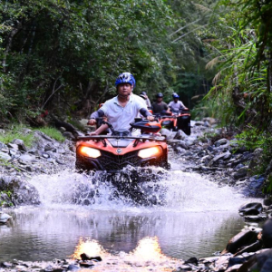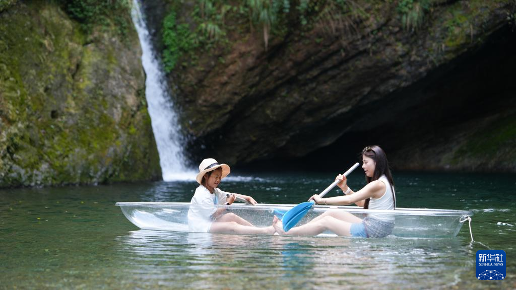 8月27日,游客在黄山市休宁县枧潭景区体验亲水项目。