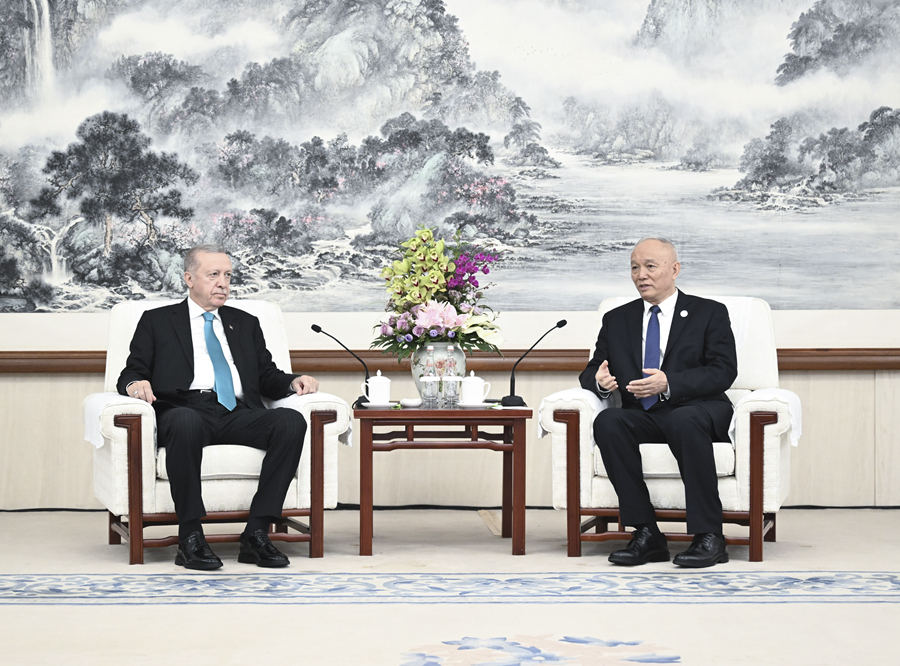 9月1日,中共中央政治局常委、中央书记处书记蔡奇在天津会见来华出席2025年上海合作组织峰会的土耳其总统埃尔多安。