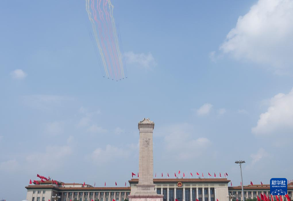 9月3日,纪念中国人民抗日战争暨世界反法西斯战争胜利80周年大会在北京隆重举行。这是加受油机梯队通过天安门广场。