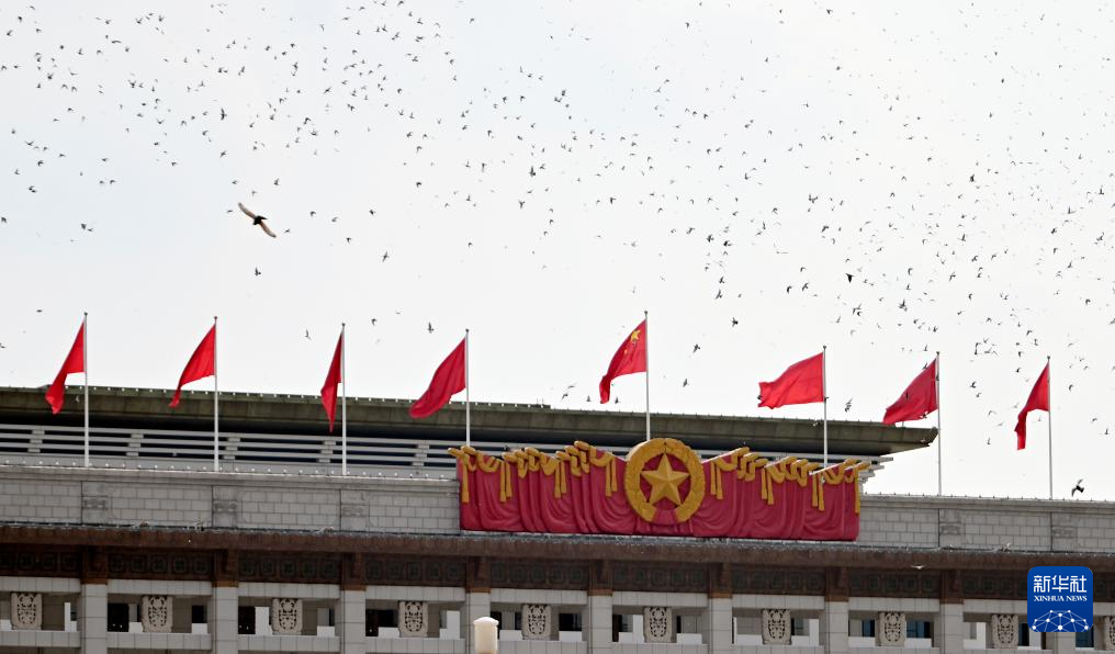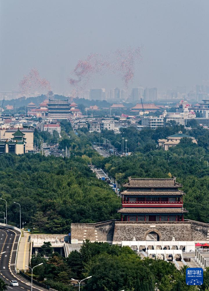 9月3日,纪念中国人民抗日战争暨世界反法西斯战争胜利80周年大会在北京隆重举行。这是纪念大会现场放飞鸽子。