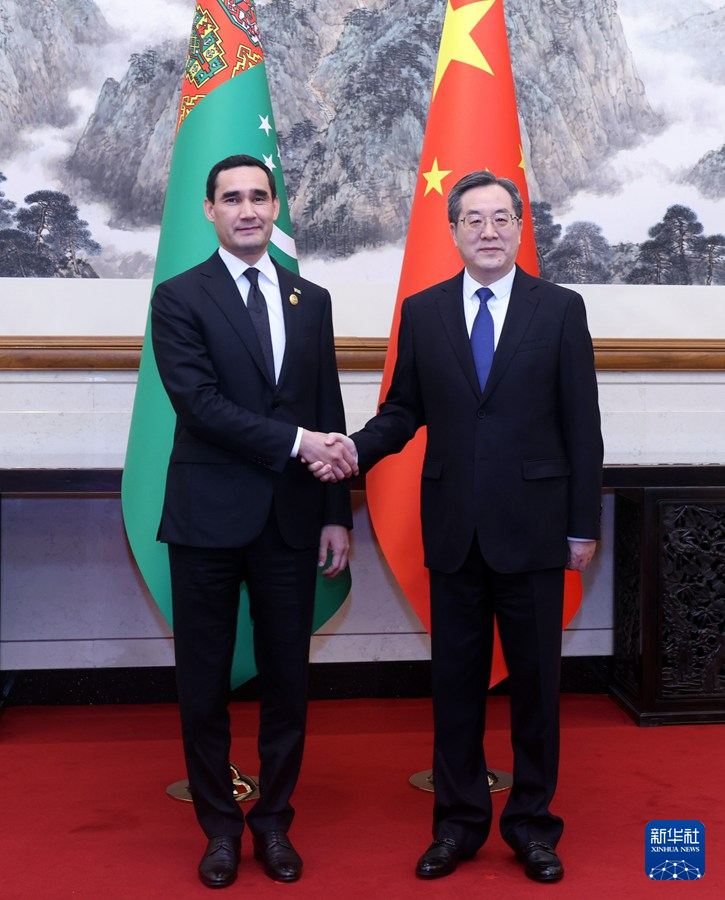 9月2日,中共中央政治局常委、国务院副总理丁薛祥在北京会见来华出席2025年上海合作组织峰会和纪念中国人民抗日战争暨世界反法西斯战争胜利80周年活动的土库曼斯坦总统别尔德穆哈梅多夫。
