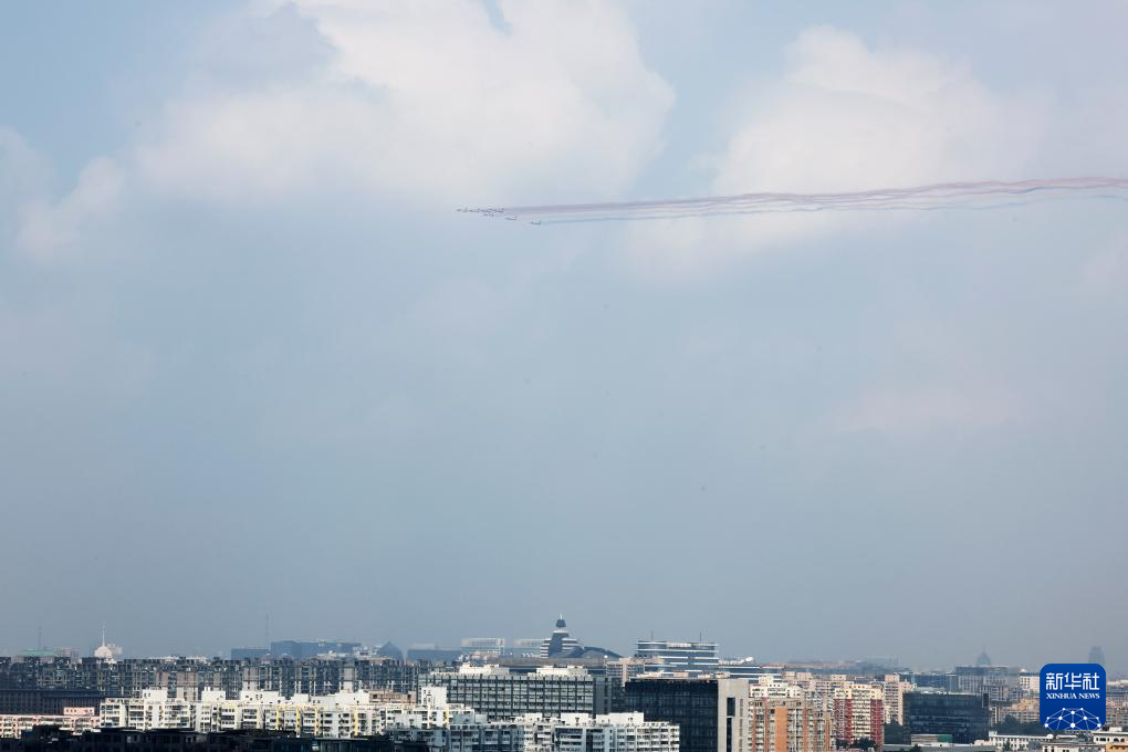 9月3日,纪念中国人民抗日战争暨世界反法西斯战争胜利80周年大会在北京隆重举行。这是在北京天坛公园拍摄的教练机梯队。