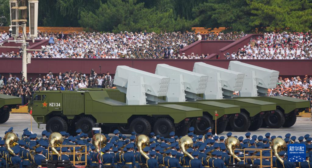 9月3日,纪念中国人民抗日战争暨世界反法西斯战争胜利80周年大会在北京隆重举行。这是远程火炮方队接受检阅。