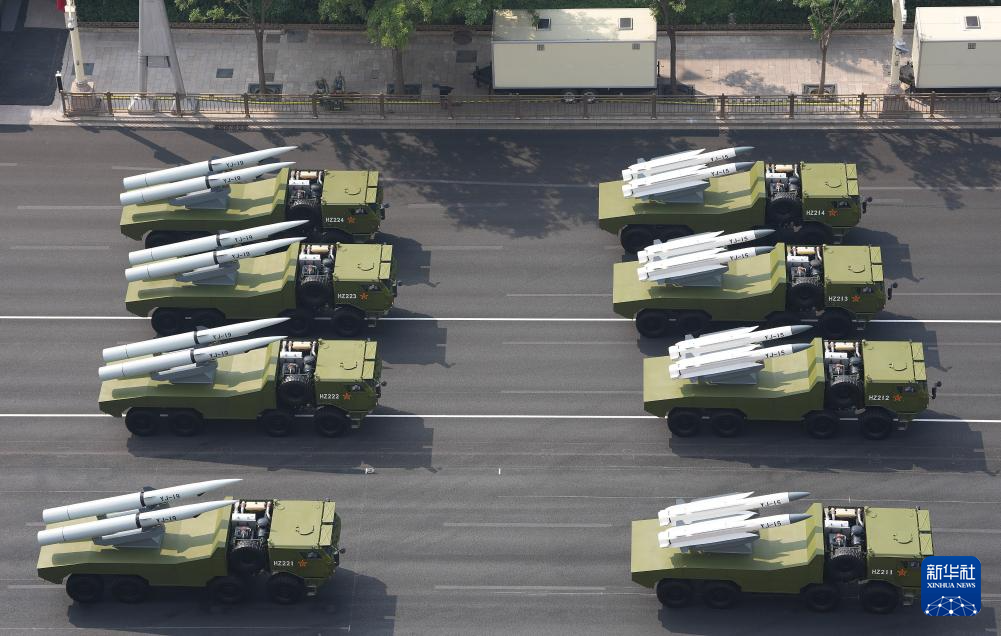 9月3日,纪念中国人民抗日战争暨世界反法西斯战争胜利80周年大会在北京隆重举行。这是反舰导弹方队通过天安门广场。