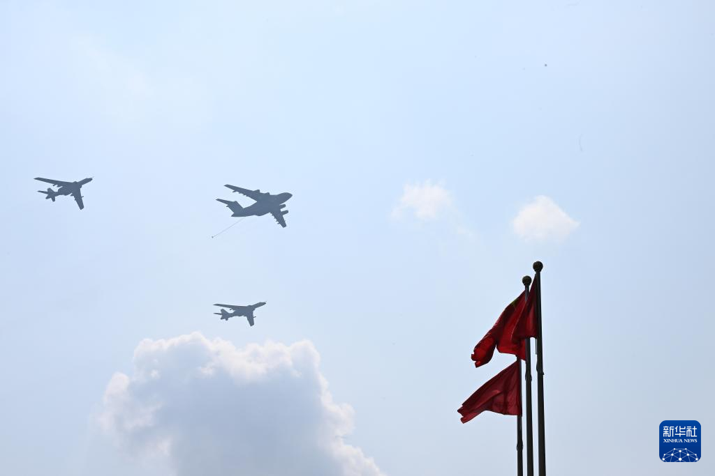 9月3日,纪念中国人民抗日战争暨世界反法西斯战争胜利80周年大会在北京隆重举行。这是加受油机梯队接受检阅。