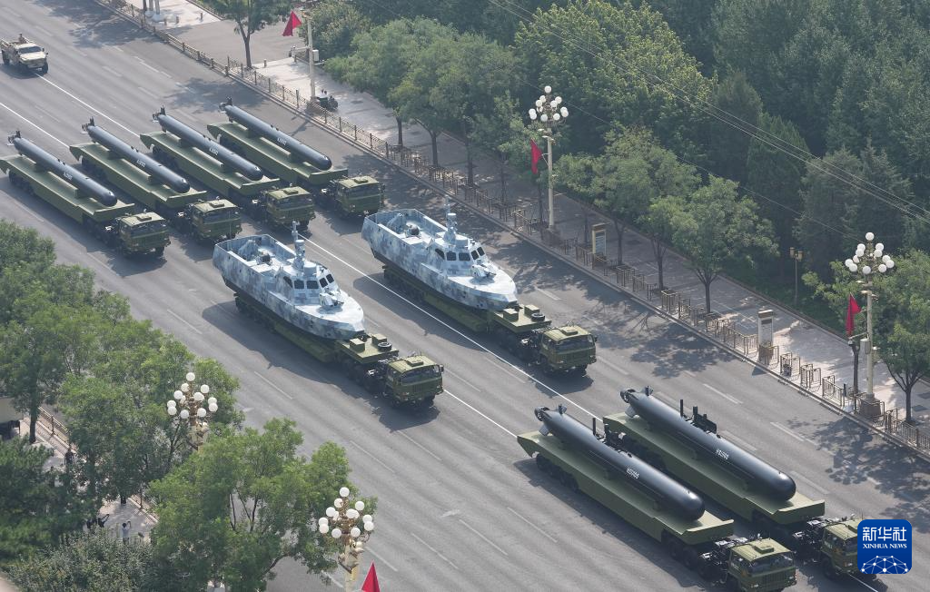 9月3日,纪念中国人民抗日战争暨世界反法西斯战争胜利80周年大会在北京隆重举行。这是水下兵器方队接受检阅。