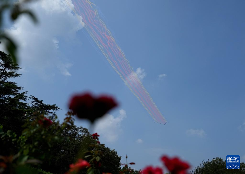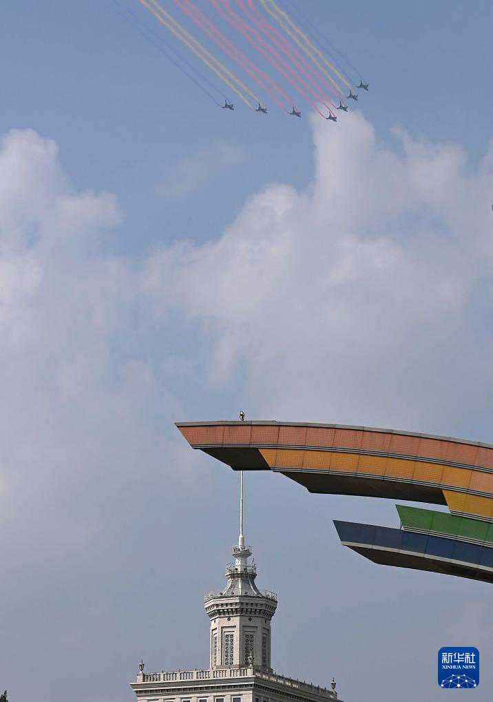 9月3日,纪念中国人民抗日战争暨世界反法西斯战争胜利80周年大会在北京隆重举行。这是教练机梯队。