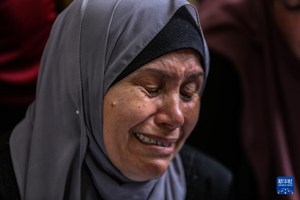 9月3日,在加沙城的希法医院,一位巴勒斯坦妇女为在以军袭击中丧生的亲友送葬。