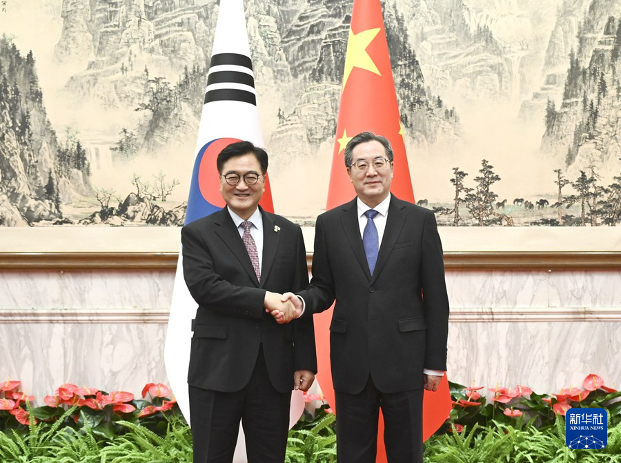 9月4日,中共中央政治局常委、国务院副总理丁薛祥在北京会见来华出席纪念中国人民抗日战争暨世界反法西斯战争胜利80周年活动的韩国国会议长禹元植。
