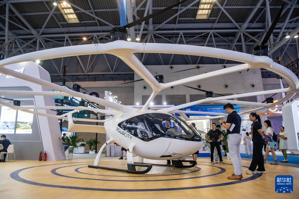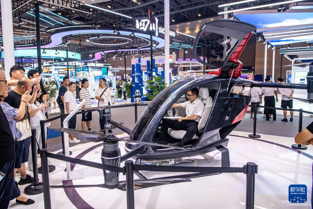 9月5日,观众参观体验轻型智能混动载人飞行器。