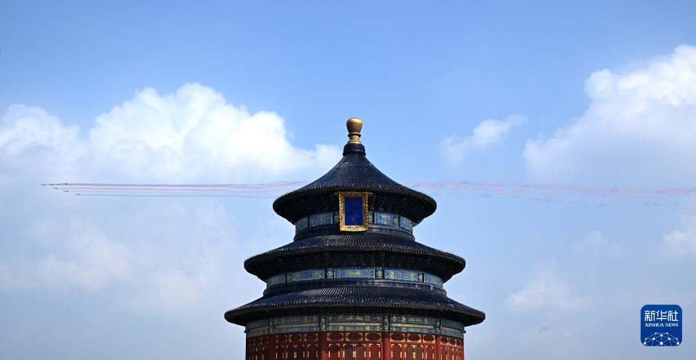 9月3日,纪念中国人民抗日战争暨世界反法西斯战争胜利80周年大会在北京隆重举行。这是在北京天坛公园拍摄的教练机梯队。