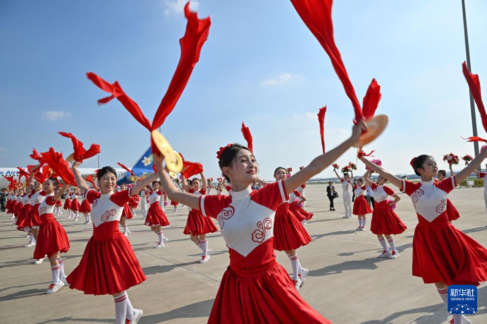 8月31日,工作人员在天津滨海国际机场迎接参加上海合作组织天津峰会的嘉宾。