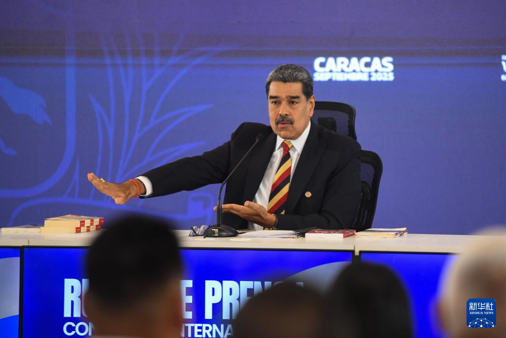 9月1日,委内瑞拉总统马杜罗在首都加拉加斯举行的新闻发布会上讲话。