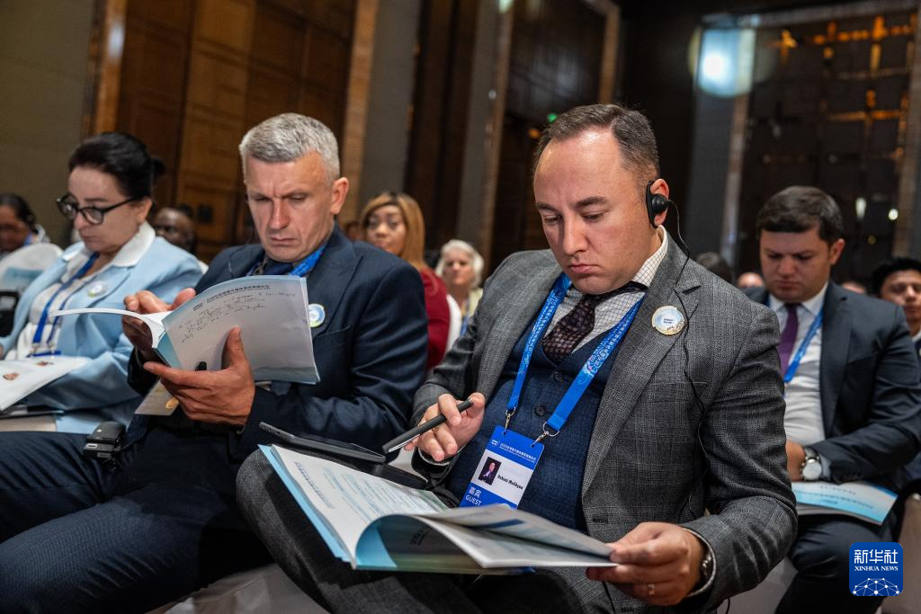 9月6日,与会代表在2025全球南方媒体智库高端论坛开幕式现场翻阅资料。
