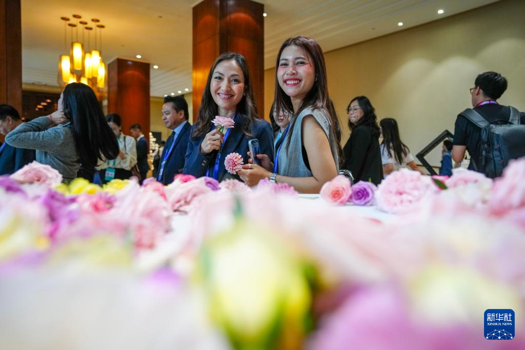 9月6日,在2025全球南方媒体智库高端论坛开幕式开始前,与会代表手持鲜花留影。