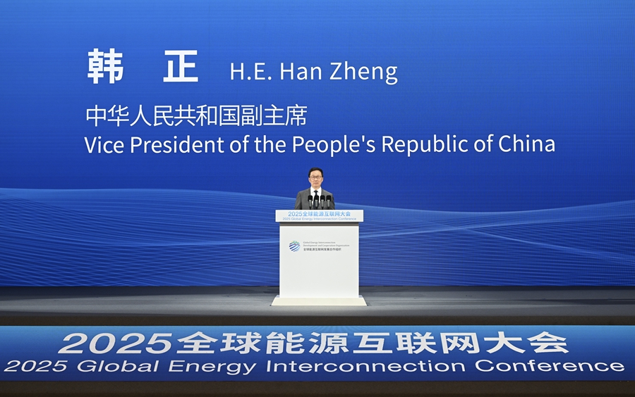 9月9日,国家副主席韩正在北京出席2025全球能源互联网大会并致辞。