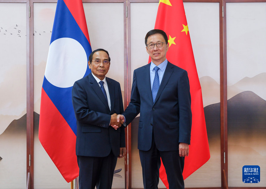 韩正会见老挝国家副主席本通