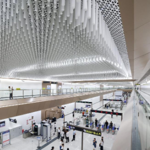 9月17日,在成都地铁17号线二期二仙桥站,市民从站台内文化墙前经过。