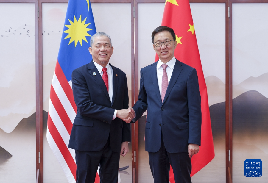 9月17日,国家副主席韩正在广西南宁会见来华出席第22届中国—东盟博览会暨中国—东盟商务与投资峰会的马来西亚副总理兼能源及水务转型部部长法迪拉。
