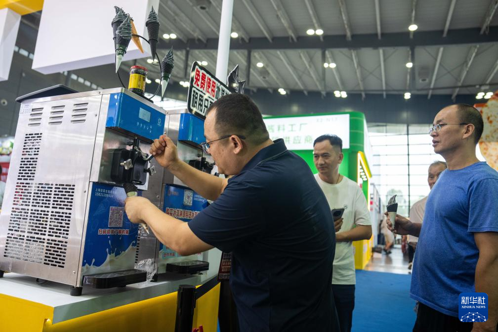 9月19日,在长沙国际会展中心,观众在品尝冰淇淋。