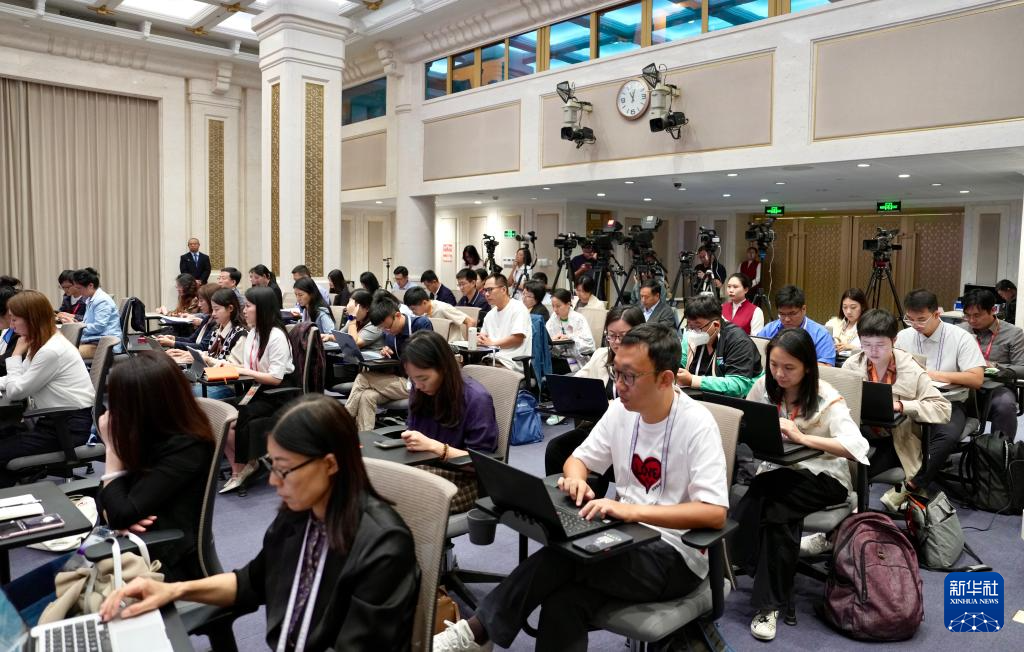 9月19日,国务院新闻办公室在北京举行“高质量完成‘十四五’规划”系列主题新闻发布会,生态环境部部长黄润秋、生态环境部副部长于会文、生态环境部副部长郭芳、生态环境部副部长李高介绍以生态环境高水平保护推动高质量发展情况,并答记者问。这是记者在工作。