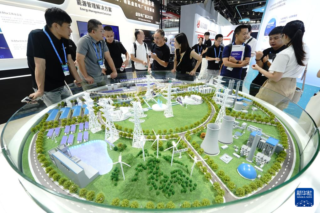 9月19日,人们在2025国际数字能源展参观“光储充+虚拟电厂”零碳园区模型。