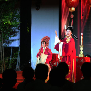 9月20日,福建芳华越剧院演员在福州西湖公园表演。