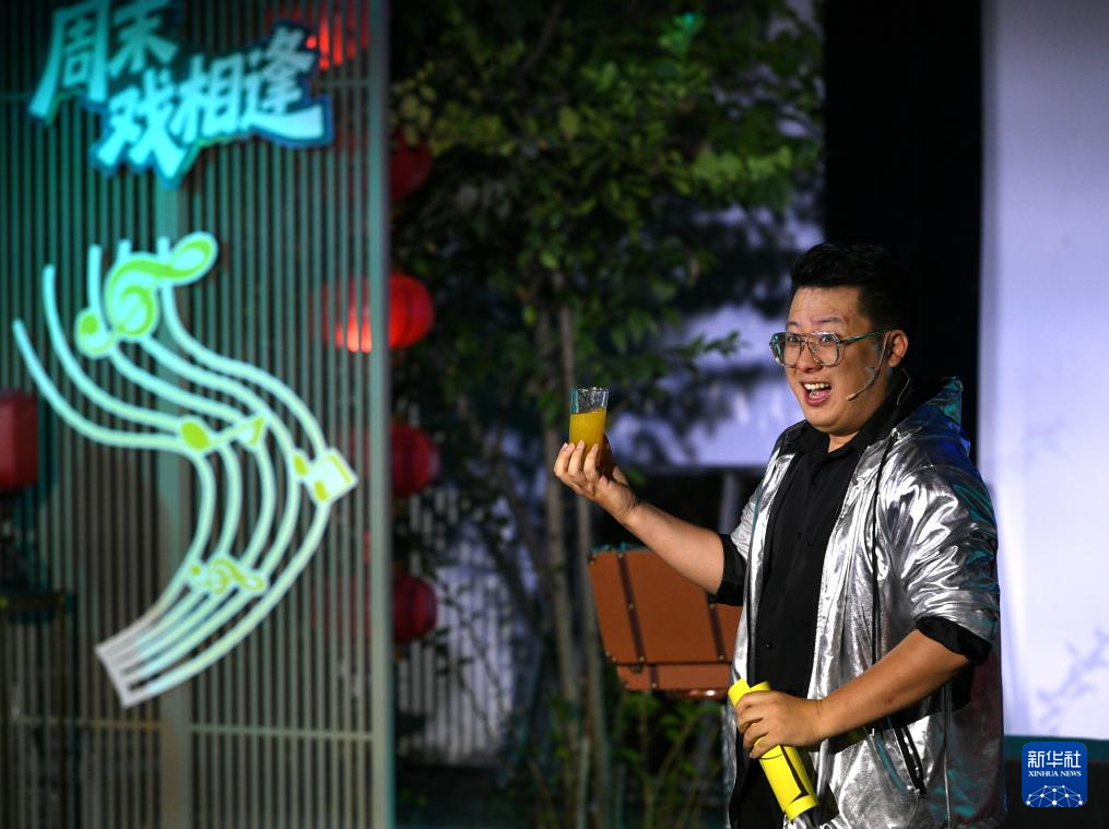 9月20日,演员在福州西湖公园表演节目《魔术脱口秀》。