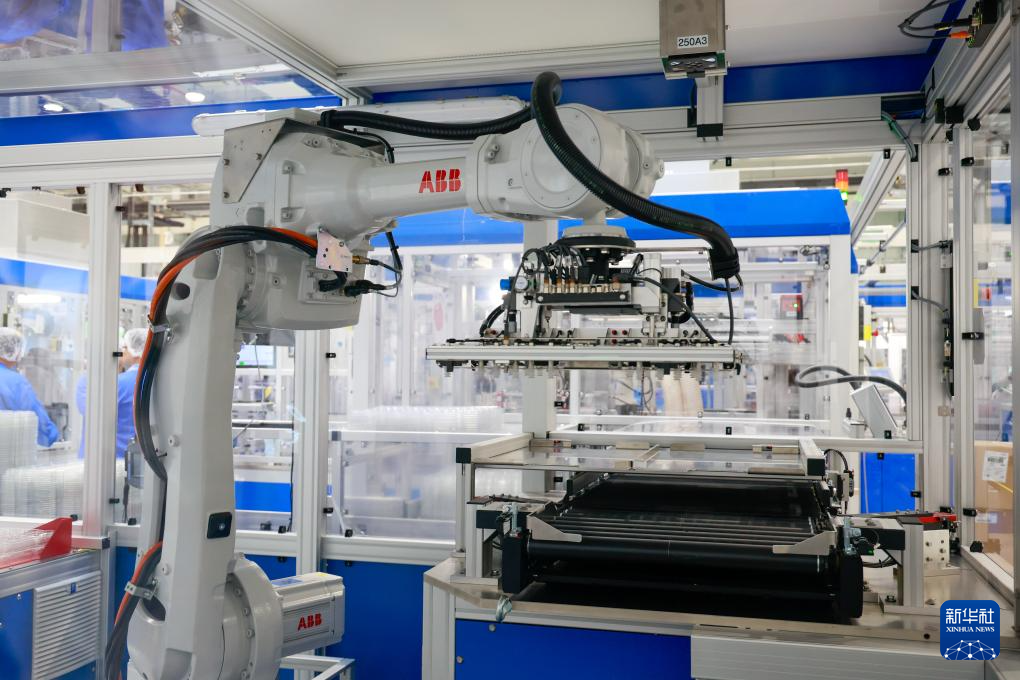 9月18日,在江苏常州中瑞(常州)国际产业创新园,机械臂在医沛生医疗器械制造(常州)有限公司生产车间作业。