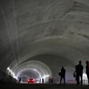 据介绍,该隧道全长1551米,双向双洞8车道,最大开挖跨度31.8米,最大开挖断面447.62平方米,是我国目前最大跨度断面市政交通隧道。