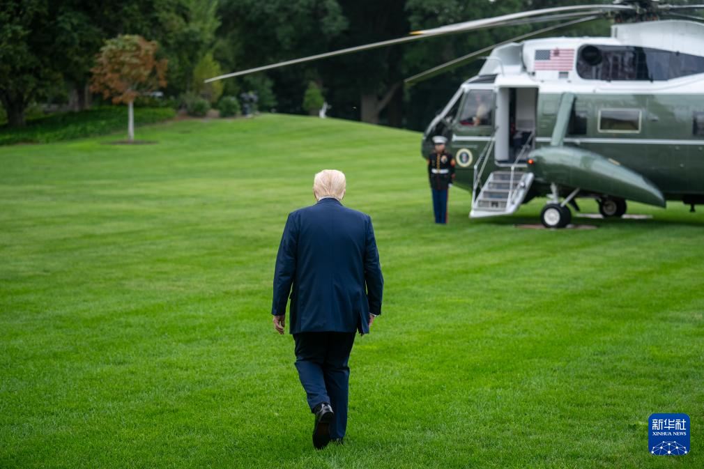 9月21日,在美国首都华盛顿白宫,美国总统特朗普准备乘直升机离开。