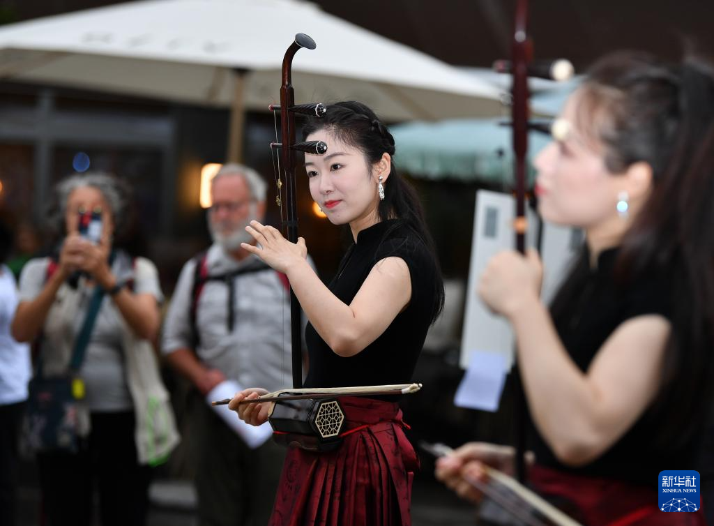 9月21日,在瑞士伯尔尼,表演者在“你好!中国”文化和旅游推广活动中演奏中国民乐。