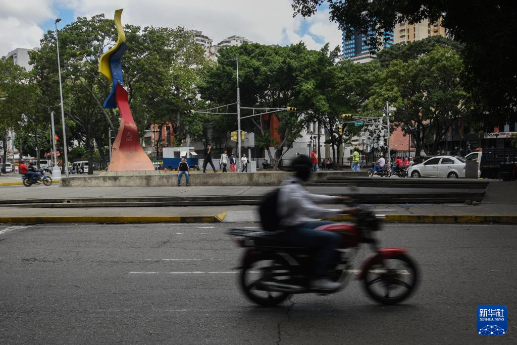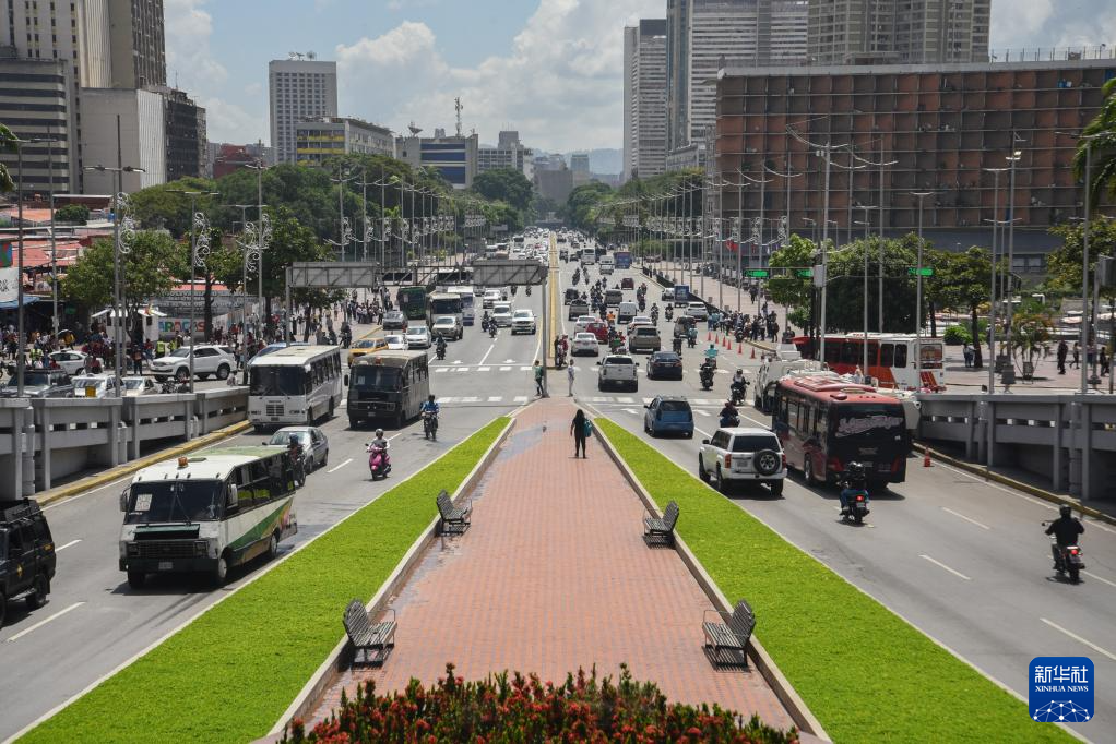 9月22日,在委内瑞拉首都加拉加斯,车流和行人经过市中心的交通干道。