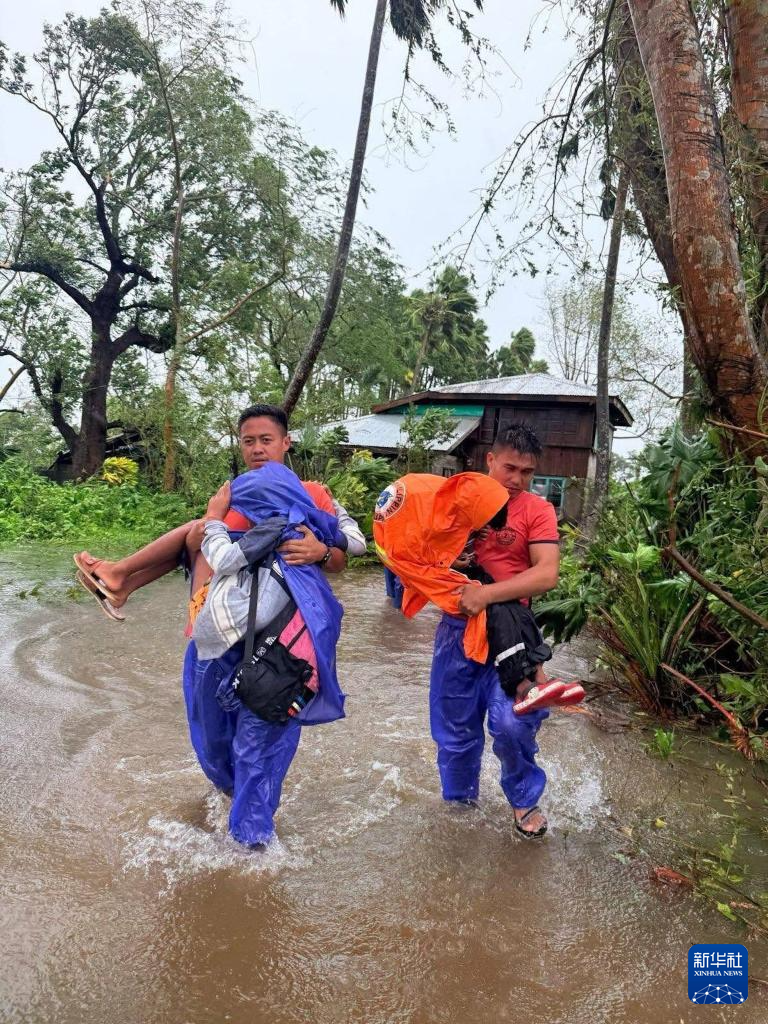 9月22日,在菲律宾卡加延省,救援人员帮助受灾居民撤离。