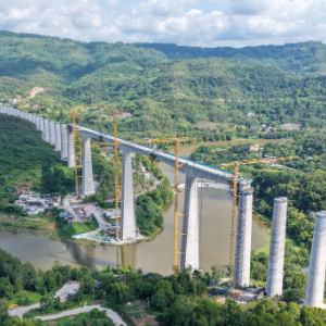 五步河双线特大桥全长1796米,跨越S207省道及长江支流五步河。此次合龙的五步河双线特大桥主跨总跨度392米,最高墩达105米。渝万高铁正线全长251公里,设计时速350公里,是国家“八纵八横”高速铁路主通道包(银)海、京昆通道的重要组成部分。