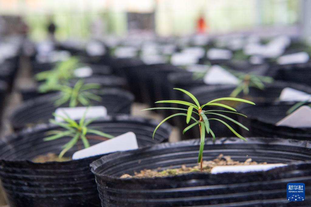 这是9月22日拍摄的人工繁育的银杉幼苗。