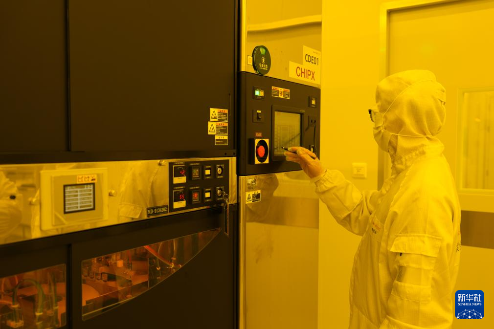 9月25日,工程师在上海交通大学无锡光子芯片研究院光子芯片中试线湿法间工作。