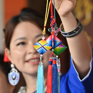 侗族吉祥花是广西三江侗族自治县的传统手工艺品,由心灵手巧的侗族女性一丝一线编织而成,融侗族印染、刺绣、织锦等技艺于一体,最早用来悬挂在风雨桥、鼓楼等公共建筑中,是祈求风调雨顺的吉祥饰品,其制作技艺列入柳州市非物质文化遗产代表性项目名录。近年来,广西三江积极研发文旅产品,侗族吉祥花从传统的公共建筑挂饰变成人们身上的寻常饰品,日益热销文旅市场。