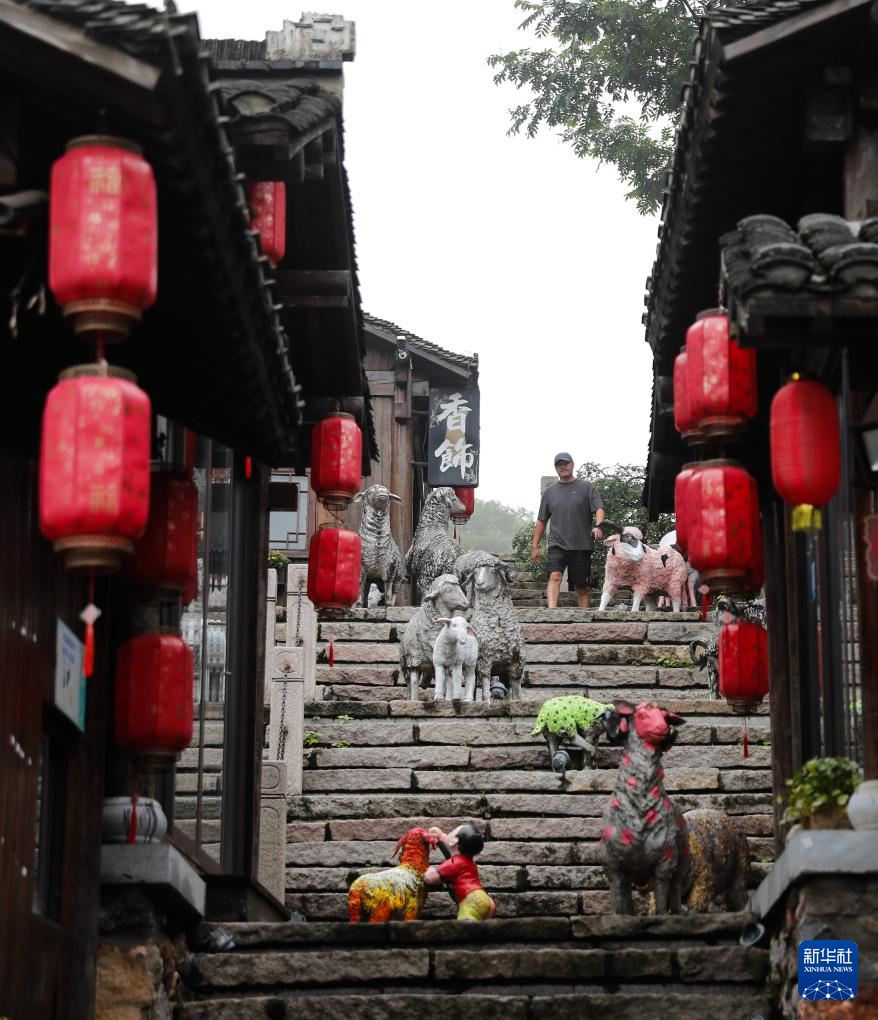 9月27日,游人在宝华山国家森林公园内的千华古村游览。