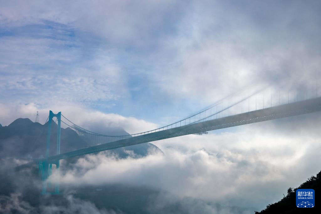 9月28日拍摄的贵州花江峡谷大桥和云渡服务区。