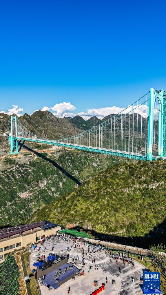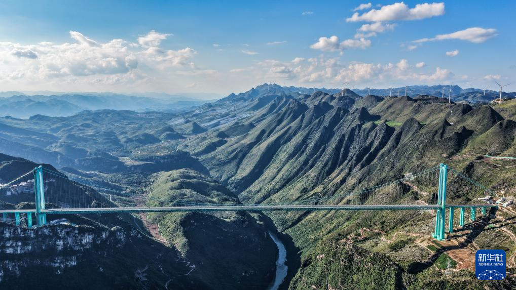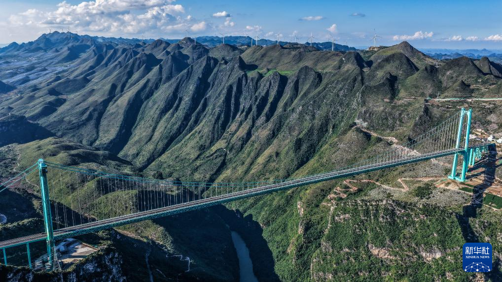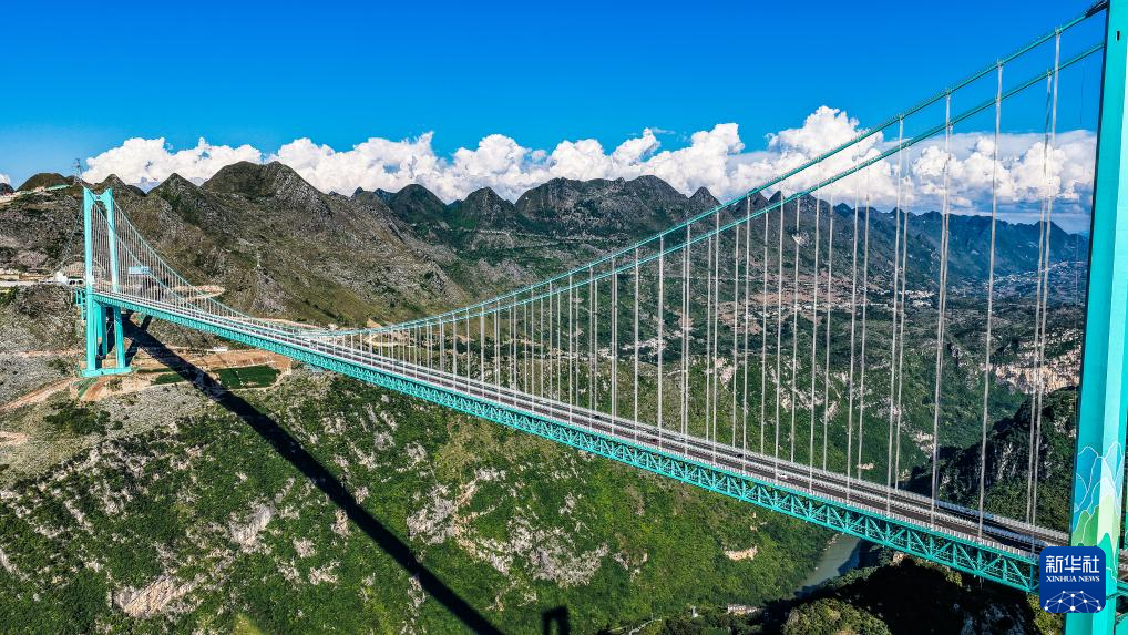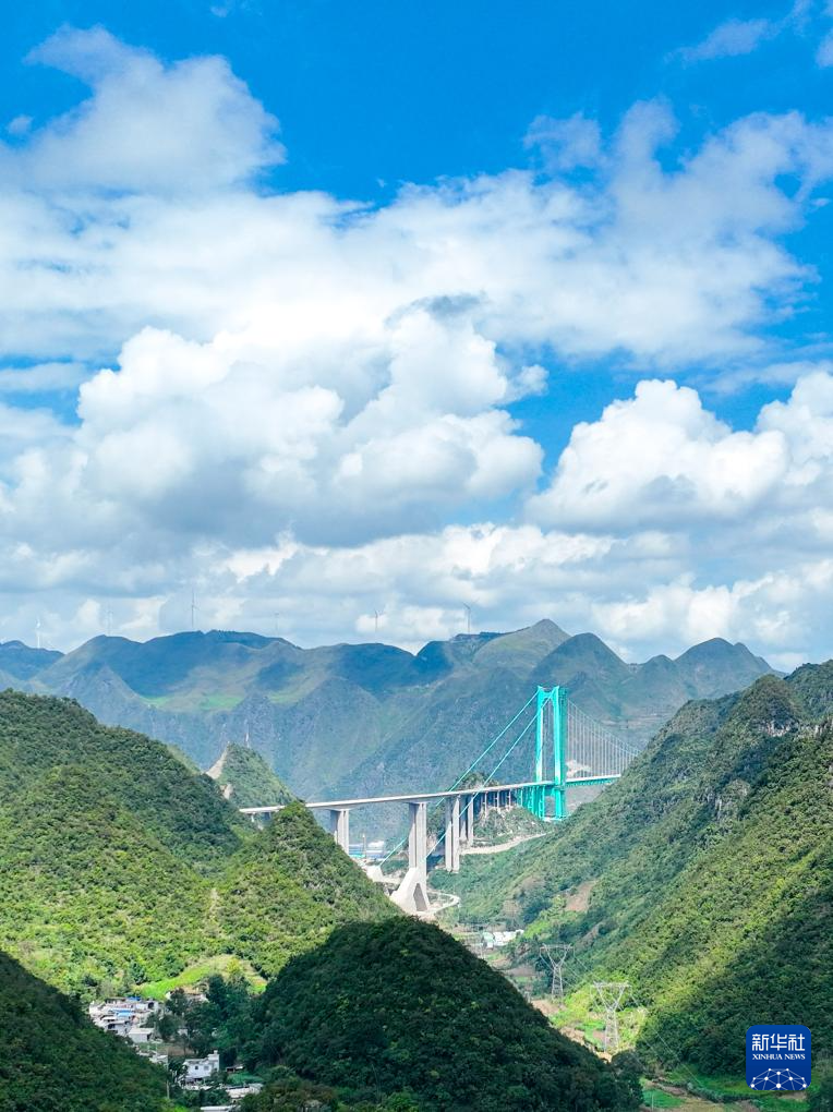 9月28日拍摄的贵州花江峡谷大桥(无人机照片)。